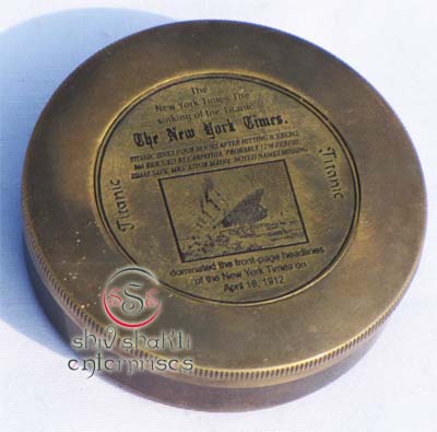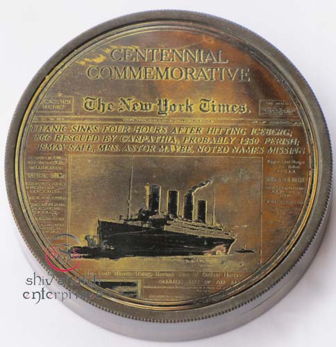 Antique Titanic CompassBrass Compass with Removable Lid is a beautiful solid brass reproduction of an brass air-damped compass. Under the Lid poem is engraved. compass needle settles to North very quickly for timely and accurate readings.