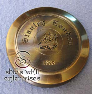 Pocket Brass CompassThis Compass is Excellent polished Handcrafted & Working Compass.Best piece of collection.All work is totally hand made. thic compass engraved with "Stanley London" 1885. The Road Not Taken..Robert Frost, Engraved inside