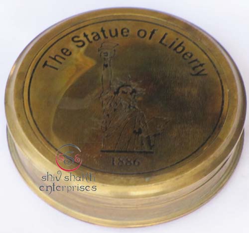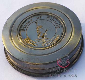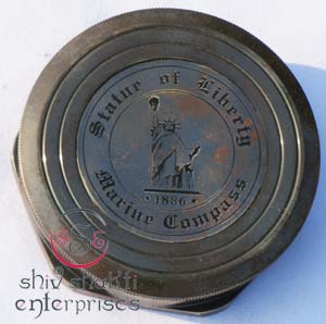 Antique Statue Of Liberty Compass It as a collector's item in your house or office.Presenting you a solid Brass marine boat directional Compass with engravings at front. A made to look like antique is used over this compass giving it is a unique look.