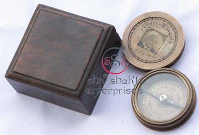 Nautical Compass with BoxAntique Finish Brass Albert Einstein Compass with Wooden Box.It shows north exactly.All work is hand made it is a beautifull gift for collectors.This Wooden box for a beautifull albert Einstein compass.