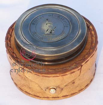 Antique Compass with CaseThis is beautiful Statue of Liberty Compass. Maritime Black Antique Finish Nautical Brass Statue of Liberty Pocket Compass With Leather Cover.