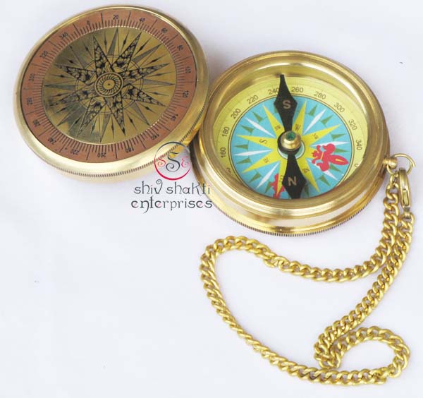 Antique Brass Compass With ChainMade of Solid Brass.Antique Look.Brass Direction Compass in proper working.all work is totally hand made.This is beautiful compass For any person.