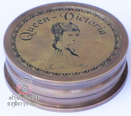 A Beautiful Queen Victoria Compass.Beautifully engraved inside the cover is the classic " Queen Of the United Kingdom"Our company is one of the leading companies that manufacture, supply and export a wide range of Brass Nautical Compass to meet the requirements of our customers. The entire range of our products is made up of high grade raw material bought from a reliable vendor in the market.