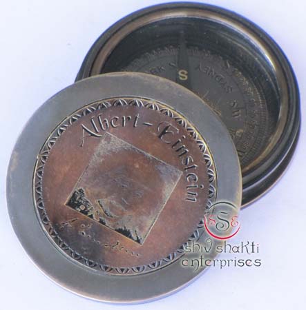 A Beautiful Albert Einstein Compass.Beautifully engraved inside the cover is the classic " Albert Einstein".Our company is one of the leading companies that manufacture, supply and export a wide range of Brass Nautical Compass to meet the requirements of our customers.This is beautiful Brass Compass.All work is totally hand made.