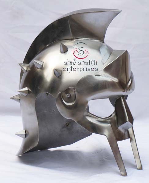 This Gladiator Helmet is made from fine quality iron steel with natural steel finish. This gladiator helmet is fully wearable & can be used in larp, sca, role-play, re-enactment, movie prop, theater, fancy halloween dress. Best quality gladiator helmet, maximus movie helmet with spikes at affordable price.