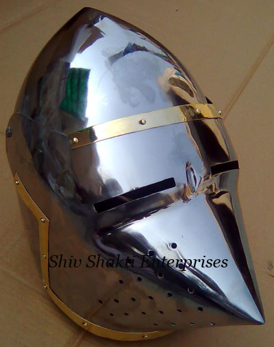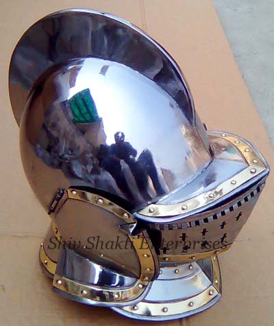 Armor HelmetWe are manufacturer & exporter of Medieval Armor European Bergonet helmets. We use high quality raw materials such as 18g mild steel. We make helmets in polish finish as well as in antique finish as per you requirement.