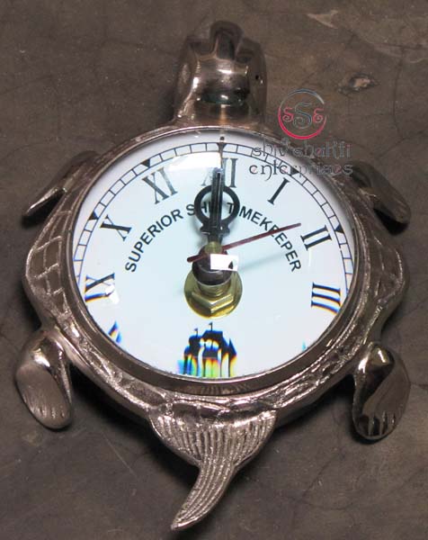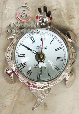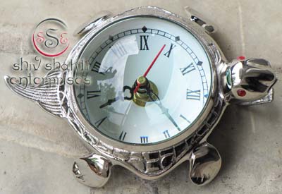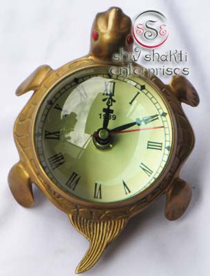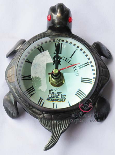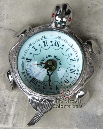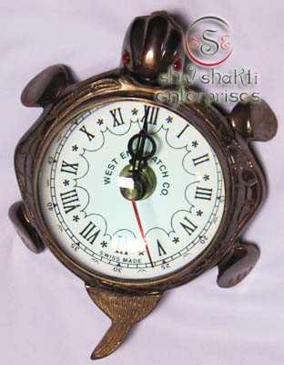 This is tortoise clock. It is made of brass. Beautiful clock for home decor, office, compant etc. This clock is decorative desktop clock. A beautiful corporate gift.This is a quality reproduction in brass of an antique maritime clock . The clock may be rotated on its axis for a perfect viewing angle. Add this conversation piece to your home decor today.