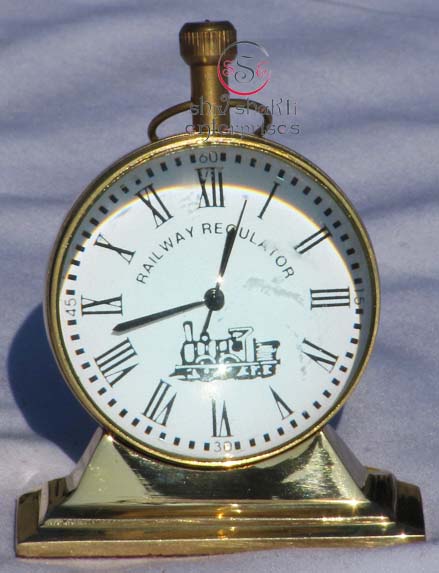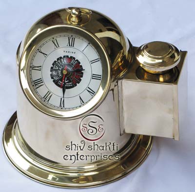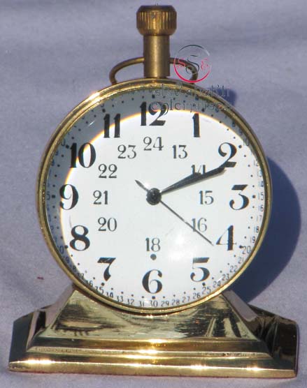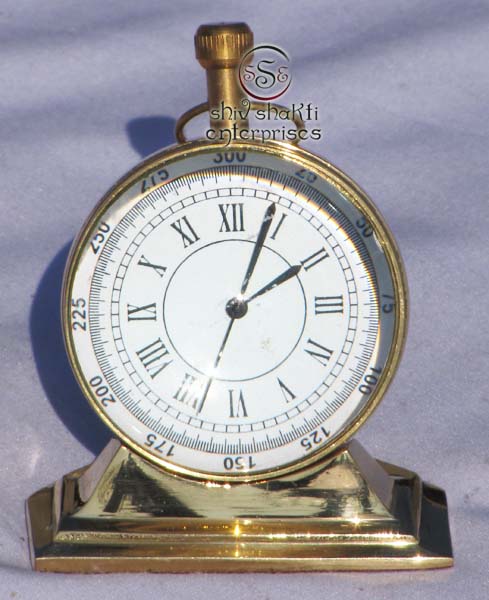 A beautiful egg stand clock corporate gift.This is a quality reproduction in brass of an antique maritime clock . The clock may be rotated on its axis for a perfect viewing angle.