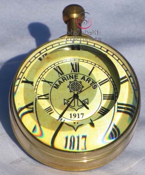 This is superior ship timekeeper clock. It is made of brass. It is made of brass. Beautiful clock for home decor, office, compant etc. 2inch diameter clock is decorative desktop paperweight clock. A beautiful corporate gift.This is a quality reproduction in brass of an antique maritime clock . The clock may be rotated on its axis for a perfect viewing angle.