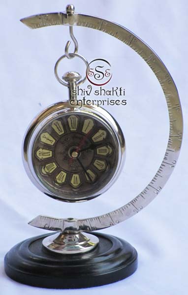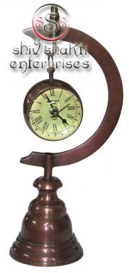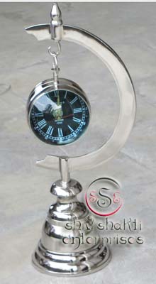 It is made of brass. This is beautiful moon stand clock for collector. We are manufacturer & exporter of nautical. A beautiful nautical clock. Beautiful clock for home decor, office, compant etc. 2inch diameter clock is decorative desktop paperweight clock. A beautiful corporate gift.