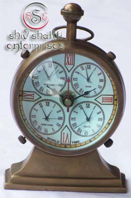 It is made of brass. This is very beautiful decorative piece. Add this conversation piece to your home decor today. Beautiful gift for collector. Replica collectible clock. This is showing NEW YORK, LONDON, HONG KONG & TOKYO Countries time.