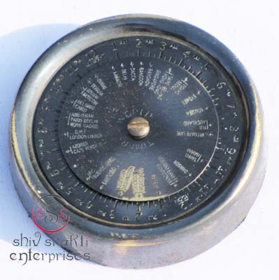 Nautical Antique World TimerYou can then determine the time in every time zone or major city in that time zone. This brass calculator even calculated the local time for cities that are one half hour of the standard time zones such as Tehran, Iran; New Delhi, India; and Rangoon, Burma. ndar. The Time Zone Calculator makes a perfect desk paperweight. The Small Time Zone Calculator measures 5.7 cm in diameter.