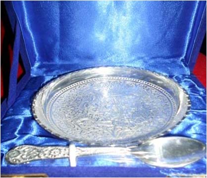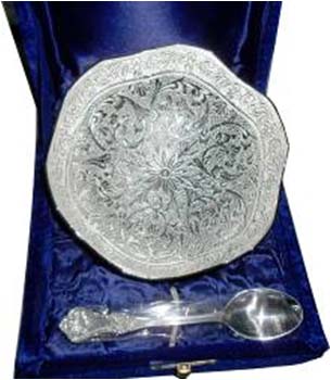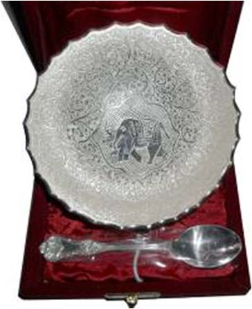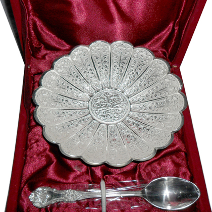 Silver Plated Plate W/ SpoonBeautifully decorated with floral carvings to give a traditional look. A must have accessory for your dining table. Exclusive utility item to serve your guest in style. A classy gift item for all occasions.