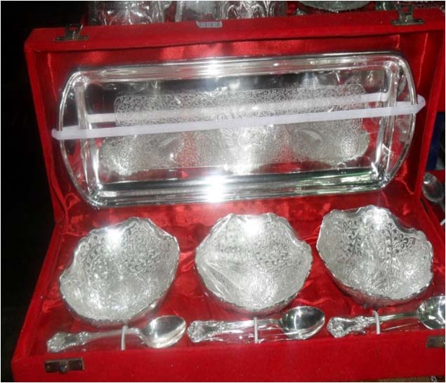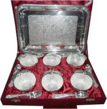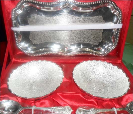 Silver Plated Bowl SetBeautifully decorated with floral carvings to give a traditional look. A must have accessory for your dining table. Exclusive utility item to serve your guest in style. A classy gift item for all occasions.