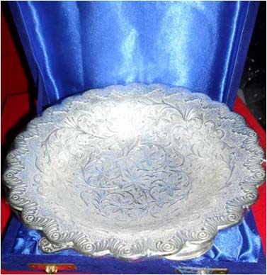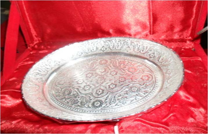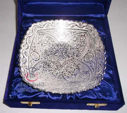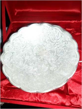 Beautiful Silver Plated Tray This is beautiful Gift. This is one of the most important parts of tableware items.This is beautiful Plate of kitchenware. Beautifully decorated with floral carvings to give a traditional look. A must have accessory for your dining table. Exclusive utility item to serve your guest in style. A classy gift item for all occasions.