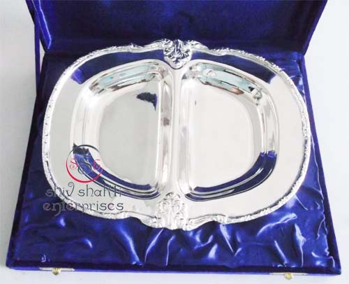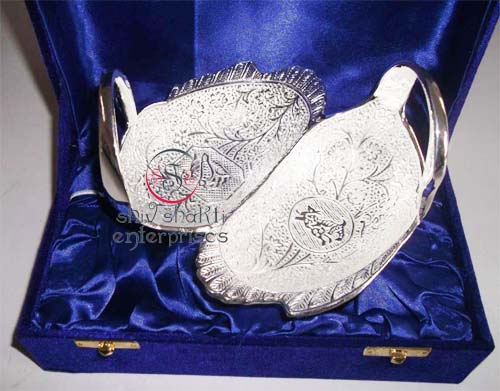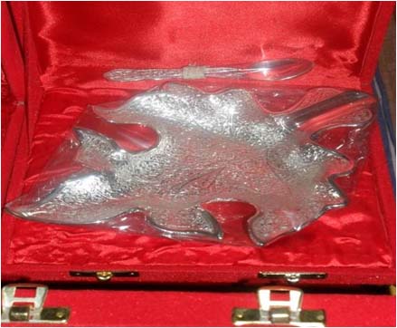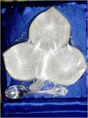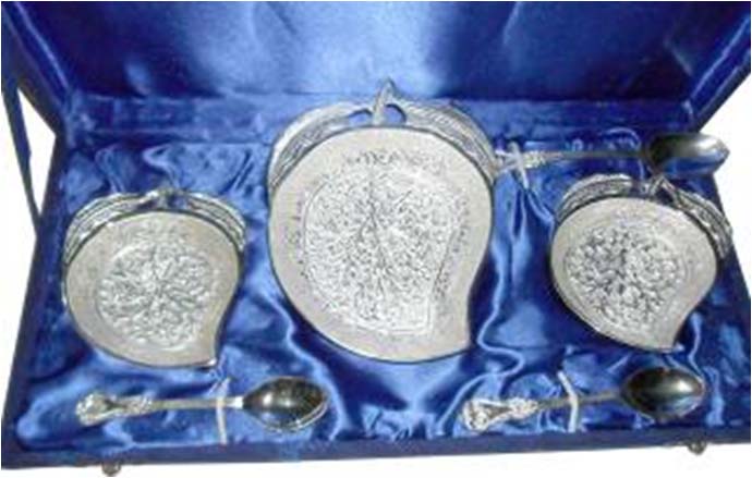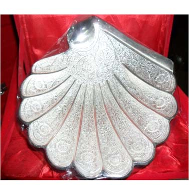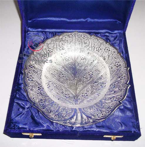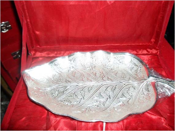 Papita Leaf Shape BowlAll items are silver plated, with the base metal being either brass, aluminum, copper or steel. Each metal gives a different look and, hence, the range of items is varied. Silver plating renders the item cost-effective, especially at a time when the cost of silver is mounting all the time.