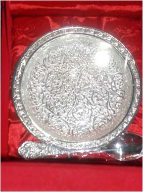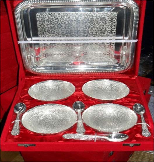 All items are silver plated, with the base metal being either brass, aluminum, copper or steel. Each metal gives a different look and, hence, the range of items is varied. Silver plating renders the item cost-effective, especially at a time when the cost of silver is mounting all the time.