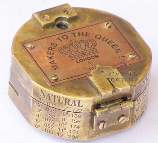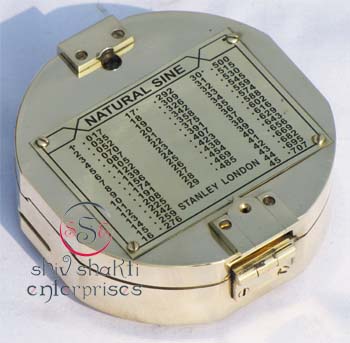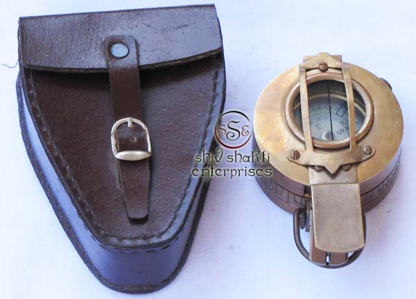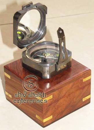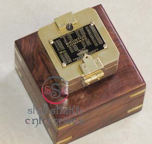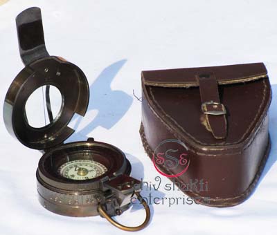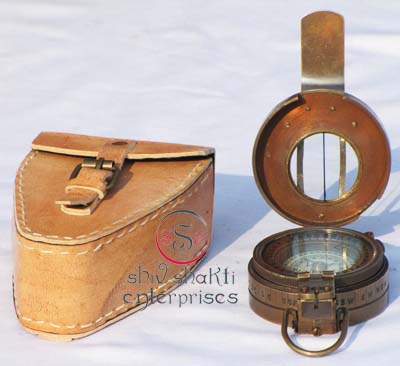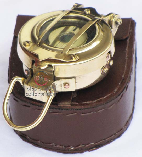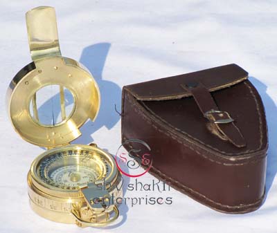 This solid brass compass is durable and heavy for its size. It is a functional compass and has a lid. Inside the lid is a mirror. This is a reliable large size brass polished Brunton Compass that comes in a hardwood box with brass inlay. This compass is made of fully brass.