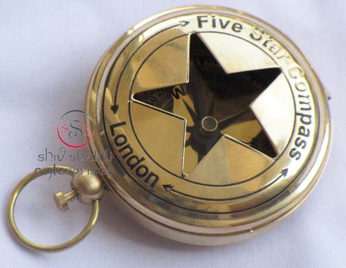 Nautical solid brass push button antique pocket compass is a Antique to a mirror-like shine and is a great companion for the true navigator. A push button connected to a ring when pushed will pop open the compass and reveal a Antique mirror-like back lid.