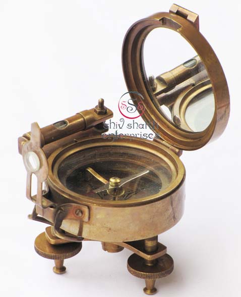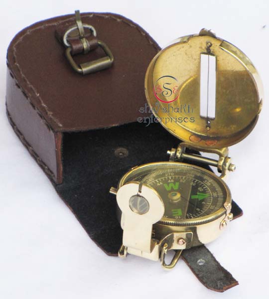 This solid brass compass is durable and heavy for its size. It is a functional compass and has a lid. Inside the lid is a mirror. This is a reliable large size brass polished Brunton Compass.